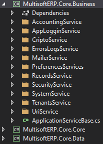 En este proyecto se encuentran todos los servicios de funcionamiento y lógica de negocio utilizados por el modelo de dominio. La estructura de diseño se ha dado de tal forma que no exista referencias a estos servicios en capas inferiores, solo en las superiores, para asegurar facilidad de mantenimiento y escalabilidad de la solución.